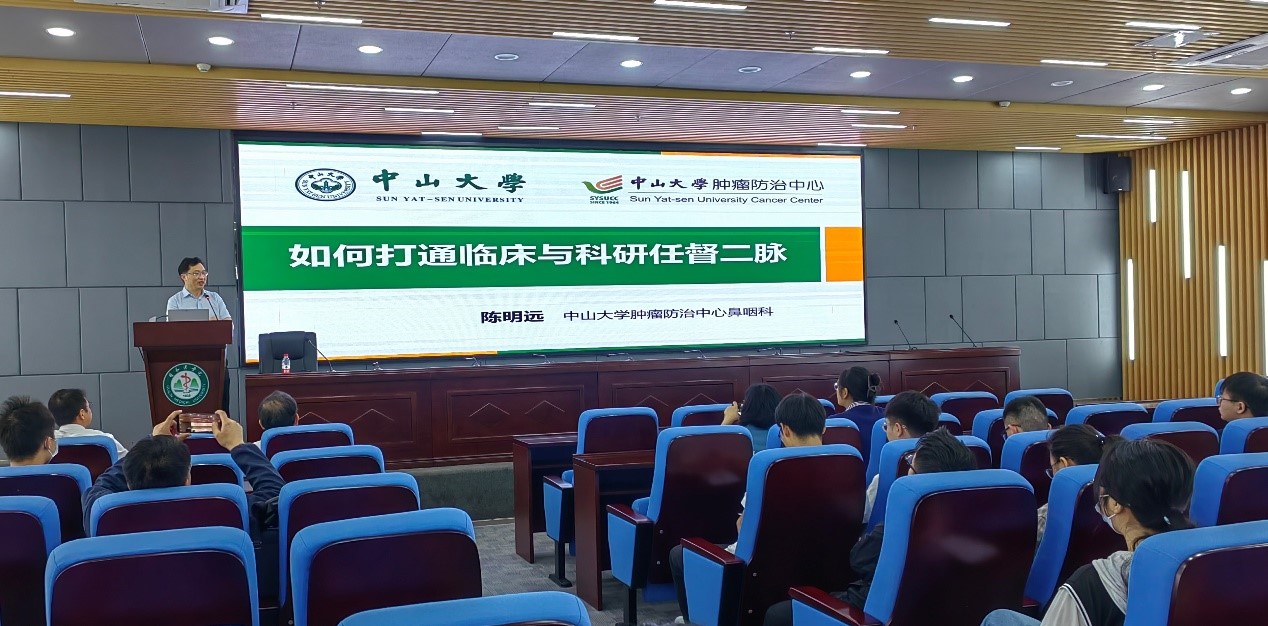 陈明远围绕“如何将临床工作转化为科研产出”“如何设计和开展科学的临床研究”“如何通过临床创新创建新兴学科”以及“如何有机融合临床与基础研究”等问题,从多个角度分享了自己从事临床工作和科学研究的宝贵经验和成果。讲座中,陈明远重点介绍了鼻咽癌治疗及研究进展,以及如何在鼻咽癌防治领域中如何开展基础与临床的结合,如何开展科研成果转化等。陈明远的讲解深入浅出、幽默风趣,现场气氛活跃,与会人员围绕着临床与科研,纷纷提出了自己的问题,陈明远都一一耐心细致地解答了大家的疑惑。本次讲座拓宽了我校师生的科研视野,开拓了科研思维,通过讲座中理论上的新观点和实际研究工作中的好方法,为师生开展临床与科研转化提供了很好的指导。