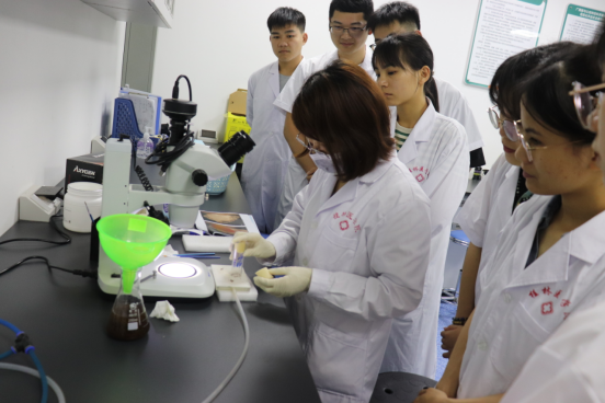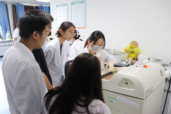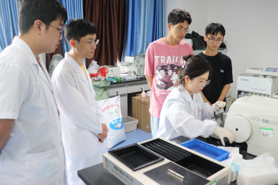 在参观实验室环节,广西脑与认知神经科学重点实验室工作人员向大家介绍了实验室主要的科研仪器,并在实验室参观过程中详细讲述并演示冰冻切片、石蜡切片的制作方法,水迷宫、穿梭箱和条件性恐惧等行为学检测技术、荧光显微镜观察免疫染色样品的方法,让大家通过观看和动手参与具体的实验过程,提高同学们的科学探索兴趣。