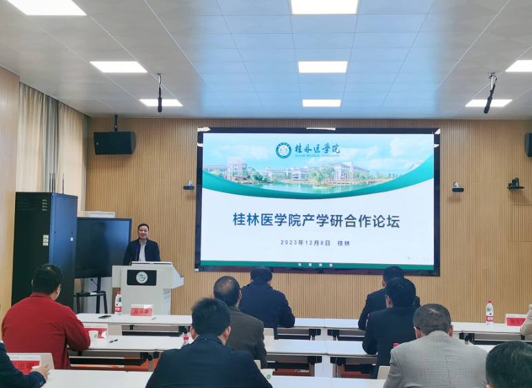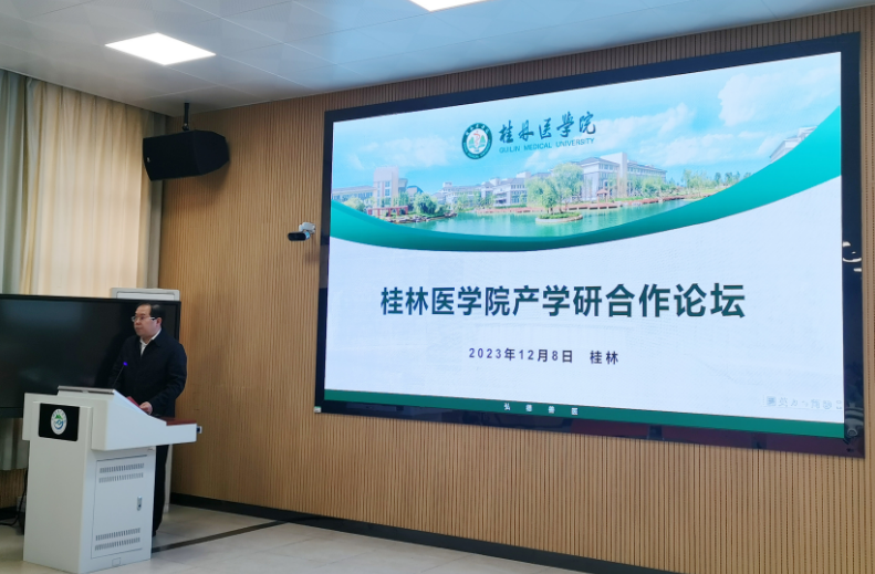 为加强校企合作,为学校和企业发展注入新活力,12月8日,桂林医学院2023年科技活动月活动之一“桂林医学院产学研合作论坛暨生物医药产业学院第二届理事会会议”圆满落幕。本次论坛特邀中国食品药品检定研究院徐丽明研究员、广西医科大学黄仁彬教授、广东药科大学刘涛副研究员、上海吉涛生物科技有限公司董事长刘天津、广州百康细胞生命科技有限公司技术总监王锐、广西爱生生命科技有限公司首席技术官罗卫飞作专题讲座。桂林医学院科技处处长蒋伟、教务处处长魏兵、生物医药产业学院院长段小群、教务处副处长彭小红、药学院副院长李芳耀、生物医药产业学院副院长谢伟全、生物医药产业学院理事会相关企业代表、师生代表近百人参加了本次论坛和理事会会议。
