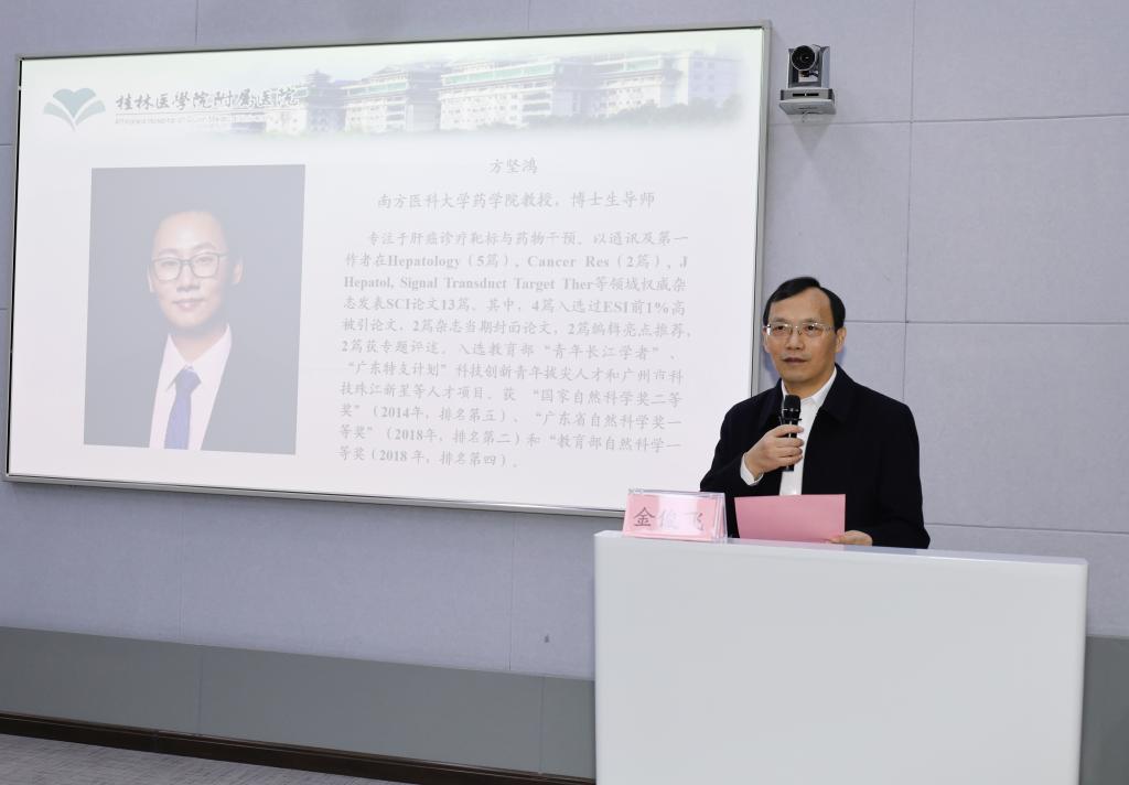 为推动医院科研工作高质量发展,积极响应学校科技活动月活动,12月8号,桂林医学院2023年科技活动月之附属医院重大疾病机制系列讲座正式拉开帷幕。南方医科大学方坚鸿教授受邀作为第一期活动的主讲嘉宾。本次讲座由桂林医学院附属医院副院长金俊飞主持,附属医院教职工、研究生、本科生共计150多人聆听了讲座。