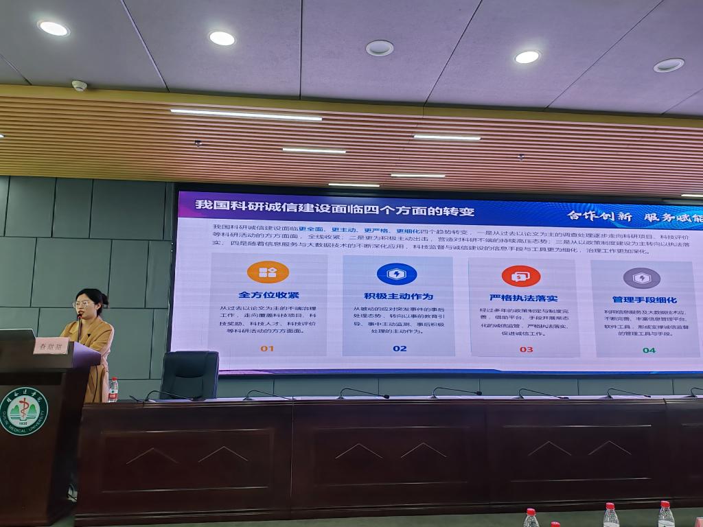 论坛由图书馆馆长主持,科技处、发展规划与医院管理处等部门相关负责人出席。论坛以专家主题报告、现场交流的形式展开。来自科睿唯安公司和万方数据公司的两位高级数据分析师,分别作了题为“可信数据驱动自信决策——客观数据助力学科发展与人才建设”和“科研诚信建设实践探索,赋能高校科技成果产业与科研诚信服务”的专题报告。