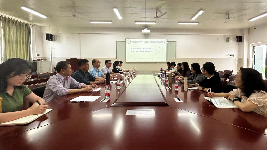 4月2日下午,大学外语部召开了广西教育科学“十四五”规划专项课题线下开题会,桂林电子科技大学韦汉教授、桂林理工大学莫运夏教授、人文管理学院副院长苗耀祥教授及课题组全体成员参加会议,会议由大学外语部副主任李茜主持。