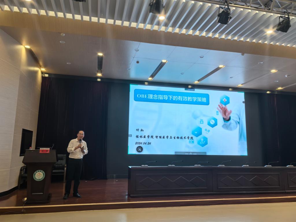 为保障我校新一轮本科教育教学审核评估工作更加顺利开展,提高教师专业素养和教学能力,4月24日下午,在临桂校区教学北楼多功能报告厅举办第二轮专任教师教学能力培训会,腾讯会议同步直播。会议邀请智能医学与生物技术学院付灿老师作题为“OBE理念指导下的有效教学策略”讲座,线上线下共计200余位一线教师参加了会议。会议由教育评价与教师教学发展中心负责人主持。