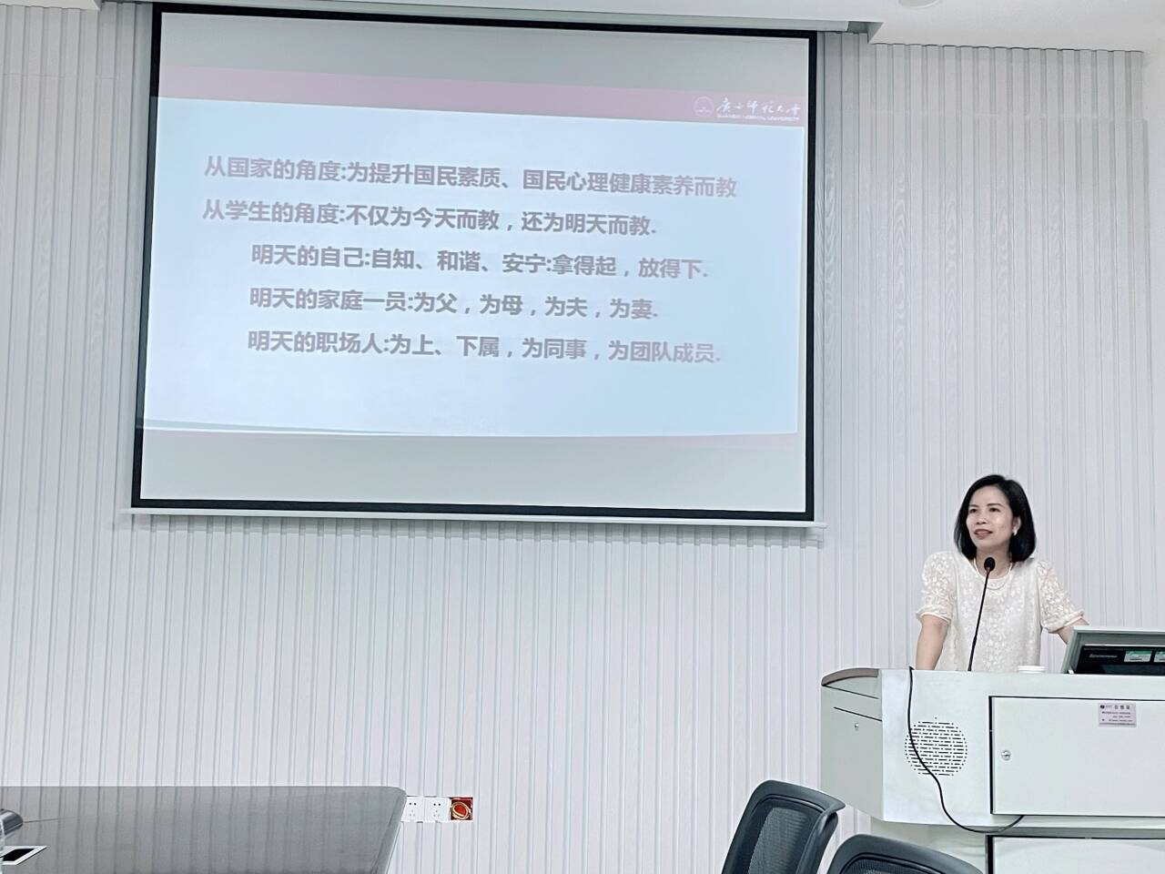 进一步提升我校学生心理健康教育工作质量,切实提高心理健康教师教学能力,6月17日上午,我校邀请广西师范大学心理健康中心欧阳丹副教授,在临桂校区大学生活动中心411会议室开展主题为《大学生心理健康教育课教学设计与比赛注意事项》教学讲座,心理健康教育与咨询中心专、兼职授课老师参加了培训。