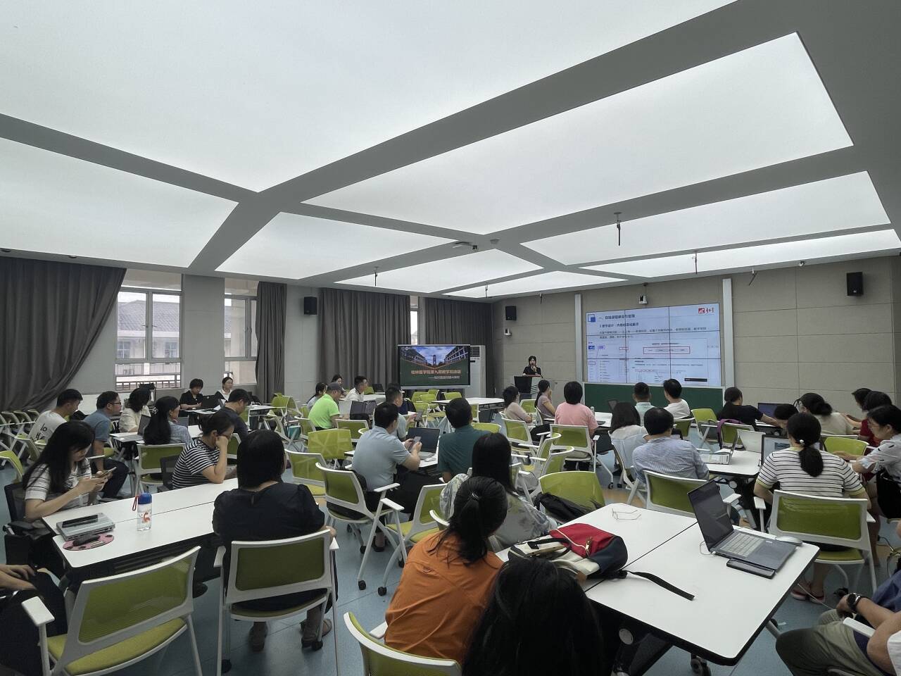 为深入推进高等教育数字化战略行动,充分利用信息技术、数字资源和信息化教学设施创设高效学习情境,桂林医学院第九期教学加油站主题定为知识图谱构建AI课程,于6月19日在临桂校区举行。邀请培训师刘宁和林贞烈作题为《如何使用智慧教学平台开展教学互动、激活课堂》《知识图谱构建AI课程,助力精准教学》的汇报,线上线下近100人参加了培训。
