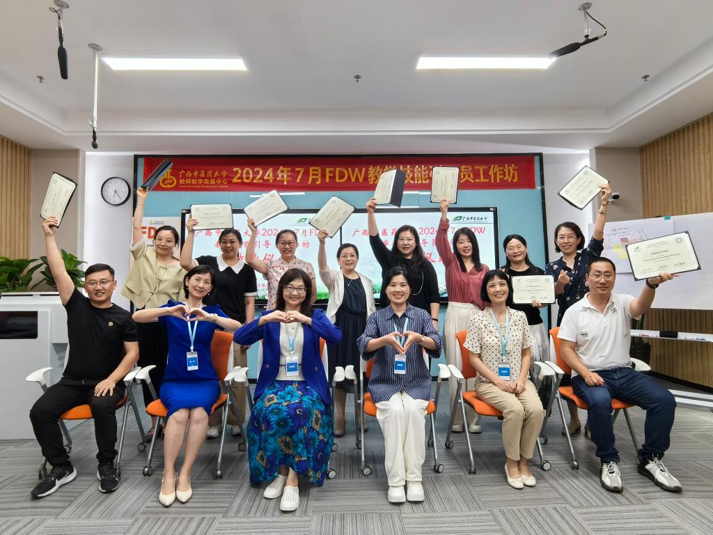 为了学习现代高等教育的新理念和其他高校的先进模式,不断充实我校教育教师能力培训团队的力量,教育评价与教师教学发展中心利用暑假时间选派优秀教师参加教学培训。7月24日—27日,我校选派医学检验学院梁骥老师和公共卫生学院韩菲老师参加广西中医药大学组织的教学促进师工作坊(FDW),两位老师全情投入,认真学习,获得国际认证证书。学校教师教学发展培训团队成员的结构、专业布局等进一步合理。