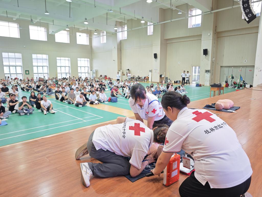 为深入学习贯彻习近平总书记向中国红十字会第十二次全国会员代表大会的致信精神,落实中国红十字会第十二次全国会员代表大会部署。10月19日—20日,桂林医学院红十字会在临桂校区启动“99急救侠”心肺复苏技能持证培训行动,桂林市红十字会党组书记、专职副会长唐小荣、校团委负责人参加活动,首批600余名学生参加培训,培训由桂林市红十字会培训师资团队实施。