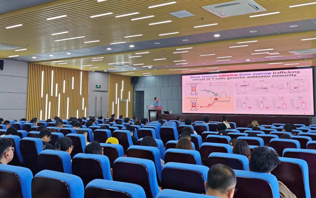 段教授在报告中详细介绍了他们团队在验证CD8+T细胞经骨髓-肠-骨髓的跨器官迁徙分子机制的精彩故事,他从发现科学问题到寻找、验证分子机制,一步步阐述了他们4年来的实验研究过程,深入简出地描述了一个完整的科学故事,既展示了优秀的科研成果,也分享了他带领团队做好科研的成功经验,整个报告生动有趣,现场交流十分活跃。