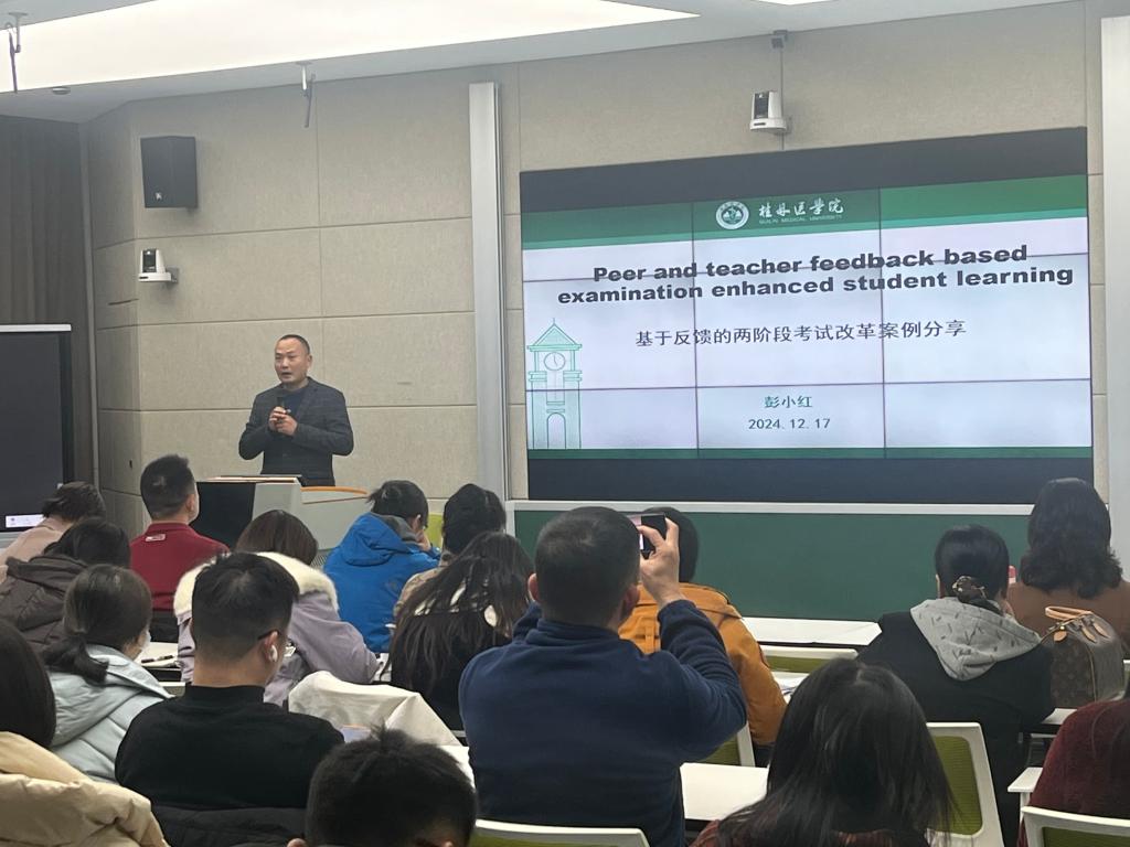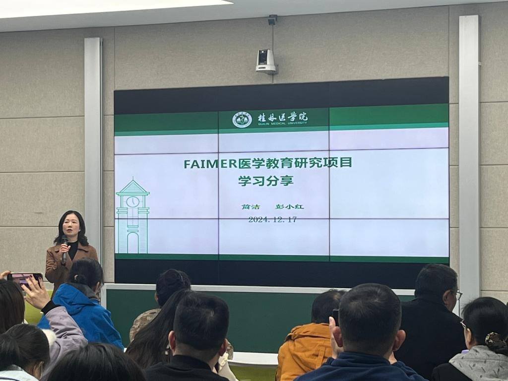 为进一步加强医学教育研究范式与教育教学理论学习,构建医学教学学术共同体,提升教师教学学术能力,12月18日下午,教育评价与教师教学发展中心在临桂校区N411进行FAIMER医学教育研究项目学习分享会。分享会由教育评价与教师发展中心简洁教授、教务处彭小红教授主讲。各级在研教改项目负责人、教研室主任及骨干教师、校级督导、培训师110余人参加了本次分享会。