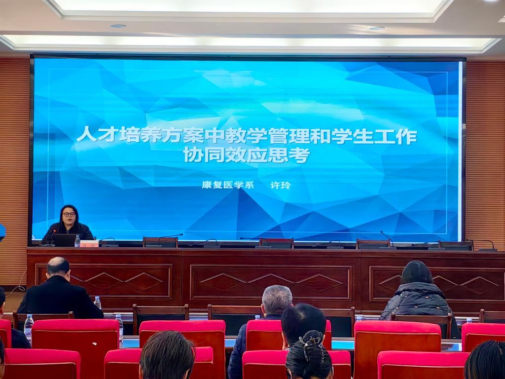 康复医学系副主任许玲作题为“人才培养方案中教学管理与学生工作的协同效应思考”的专题报告。许玲从人才培养方案的作用与依据、制定过程中的问题、面临的冲突与协调策略,以及未来建议与展望四个维度,深入探讨了教学管理与学生工作在人才培养方案中的协同作用。许玲表示人才培养方案在高等教育中的核心作用,指出其对学生学业规划的重要性。她分析了教学管理与学生工作间的协调问题,并提出加强沟通、优化资源配置、创新管理机制的建议。