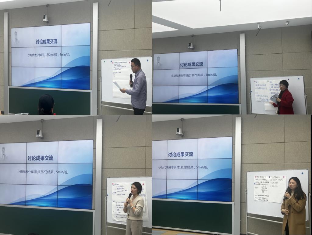 与会教师分组聚焦两份教学改革工作方案,对其优缺点、改进建议等方面开展了研讨。研习过程中,与会教师讨论热烈而深入;各组代表分享和展示小组的研讨成果,为如何改进样本方案提供了许多宝贵的思路和意见。