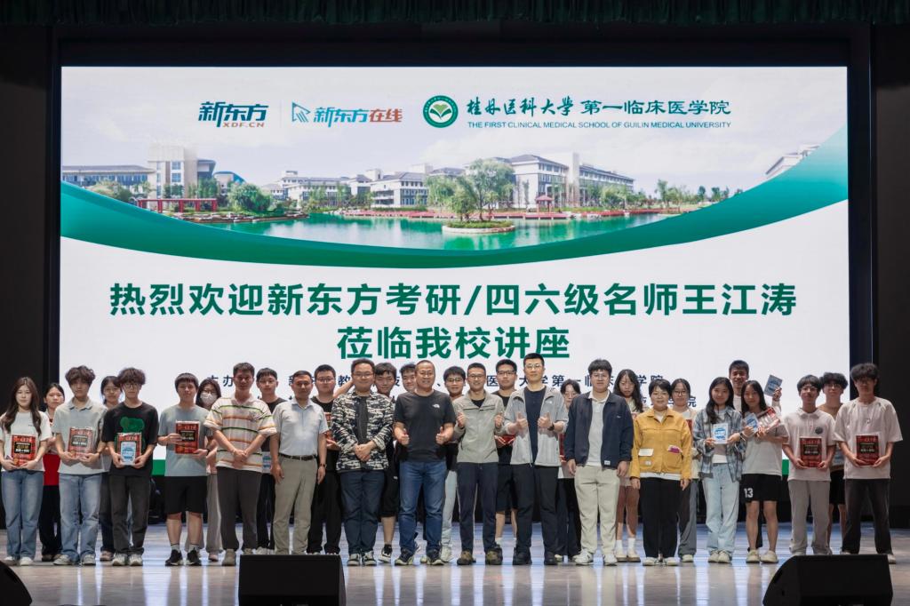 为加强学风建设,助力学生提升英语四六级和考研英语的备考能力。4月22日,由第一临床医学院主办,人文与管理学院、智能医学与生物技术学院承办的《考研/四六级提分技巧讲座》在临桂校区艺术中心举行,本次讲座特邀新东方教育科技集团考研英语名师王江涛主讲。第一临床医学院、人文与管理学院、智能医学与生物技术学院800余名学生参加了讲座。