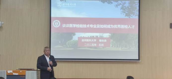 楼永良教授聚焦医学检验技术专业的发展与人才培养,结合温州医科大学检验医学院的办学理念与专业特色,强调医检人才需要具备扎实的专业能力与综合素质,并建议学生应科学规划职业生涯,明确目标、扬长补短,同时要注重团队协作与时间管理,做到“学习与生活平衡”,为未来成为一名优秀的医检人才奠定基础、积蓄力量。