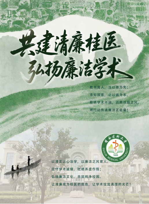 近期,由校研究生工作部主办,校研究生宿管会承办的桂林医科大学“共建清廉桂医,弘扬廉洁学术”海报设计大赛圆满结束。本次大赛旨在通过创新设计手法与趣味表达,生动勾勒廉洁学术风貌,倡导严谨治学态度,为清廉校园建设注入青春动能。