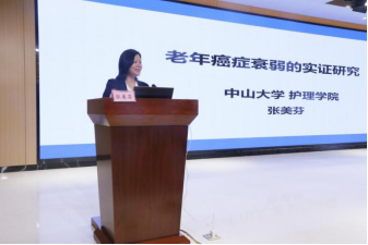 张美芬教授以《老年癌症衰弱的实证研究》为题发表专题报告。在健康老龄化受到全球广泛重视的背景下,衰弱已成为多学科交叉研究的重点领域,她详细介绍了衰弱概念的多维度演变历程及当前主流的衰弱评估测量工具,并展示其团队在老年癌症衰弱领域所取得的研究成果,为护理人员应对老年癌症患者衰弱问题提供了新思路。