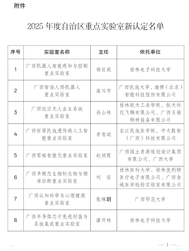 8月4日,广西壮族自治区科学技术厅发布了《关于公布2025年度自治区重点实验室新认定名单的通知》。由我校检验与生物技术学院牵头,联合桂林优利特医疗电子有限公司及广西金域医学检验实验室有限公司共同申报的“广西多模态生物标志物与精准诊断重点实验室”成功入选,标志着我校在医学检验与生物技术领域的科研平台建设迈上新台阶。