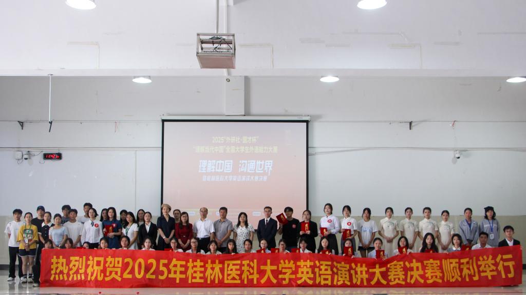 9月27日下午,大学外语部在教室南楼多功能报告厅举办了2025年“外研社·国才杯”“理解当代中国”全国大学生外语能力大赛英语演讲比赛校赛暨桂林医科大学英语演讲大赛决赛。比赛主题为“Strike the Waves(击水中流,破浪前行)”,以“引导学生深刻理解当代中国、提升国际传播能力”为核心目标。一方面,大赛旨在助力学生深入领会习近平新时代中国特色社会主义思想核心要义,全面认识当代中国发展成就,学会向国际社会传递中国改革发展的经验与智慧;另一方面,通过实战比拼,切实提升学生语言实践能力与综合素养,为推动高校英语教学改革创新、培养堪当民族复兴大任的高素质国际化外语人才搭建实践平台。