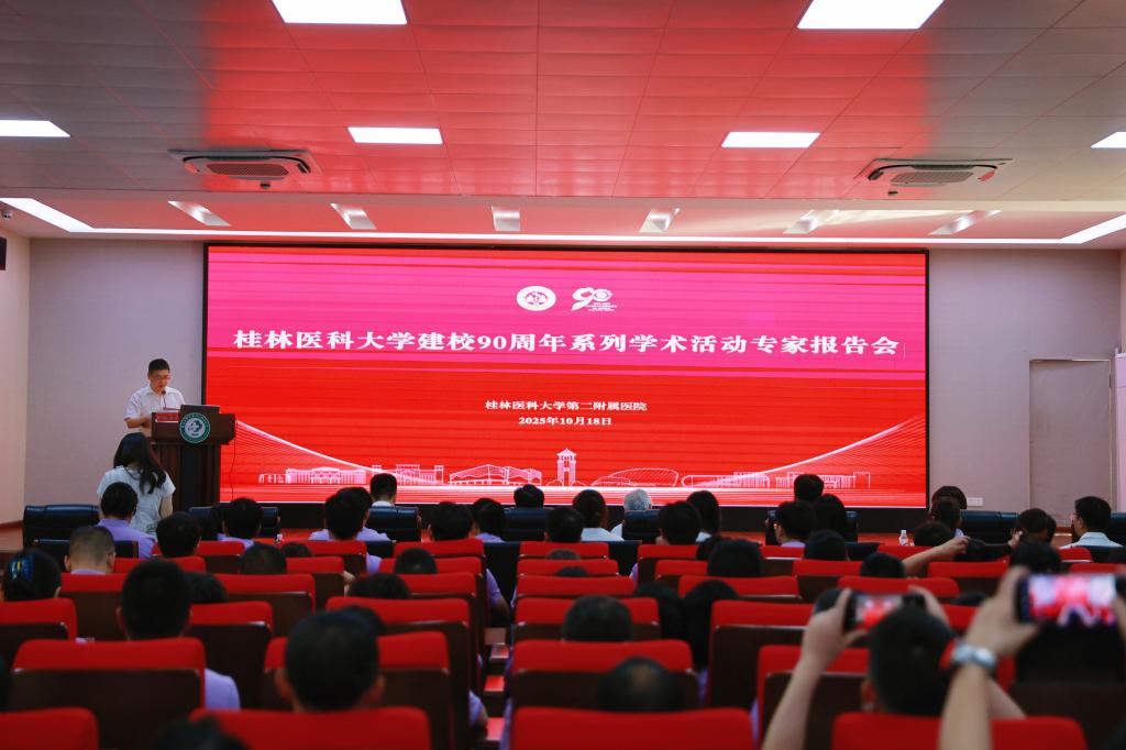 10月18日下午,桂林医科大学建校90周年系列学术活动——专家报告会在第二附属医院举行,活动特邀中国科学院院士苏国辉、暨南大学韦计安副研究员开展讲座,分享研究成果,活动聚焦医学前沿领域,为学校学科建设与科研创新注入新动能。