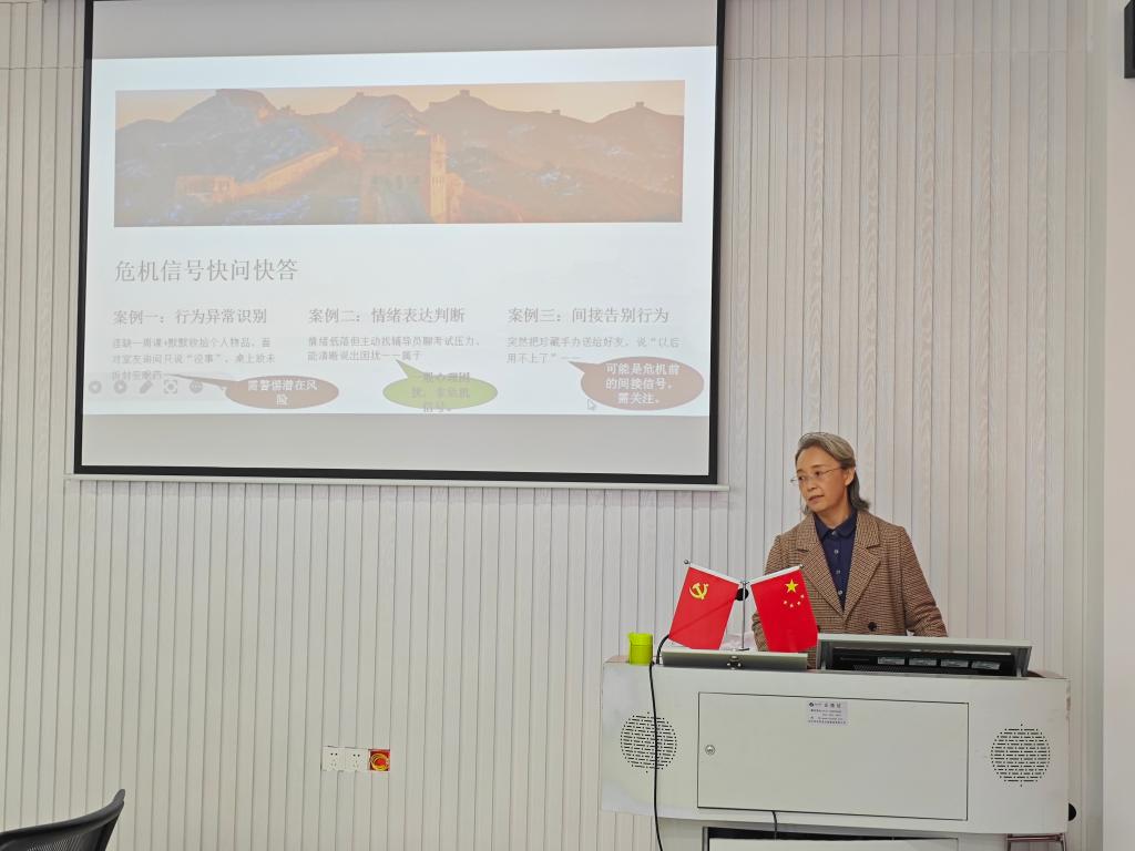 本次培训特邀资深心理专家、心理学教授戴玲担任主讲。她围绕“心理危机干预核心技能”主题,系统讲解了大学生常见心理危机的识别与评估方法,深入阐述了危机干预的基本原则、标准化流程,并结合实际案例,重点剖析了辅导员在危机干预中的角色定位与沟通技巧。授课内容兼具理论深度与实践指导性,受到参训人员广泛好评。