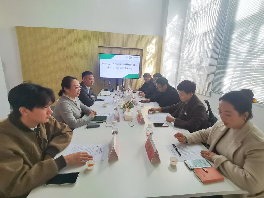段小群对先康达集团一行的到访表示热烈欢迎,并简要介绍了生物医药产业学院与广西转化医学学会的发展历程、建设成果,以及在校企合作、人才培养、产学研创等领域所开展的工作与取得的成效。他表示,学院与学会正致力于构建覆盖临床前研究、细胞基因治疗、临床研究的全链条一站式服务平台,能够为生物医药企业提供强有力的技术支撑与服务。希望双方能够以此为契机,深化资源共享,推动项目落地,共绘合作发展新蓝图。