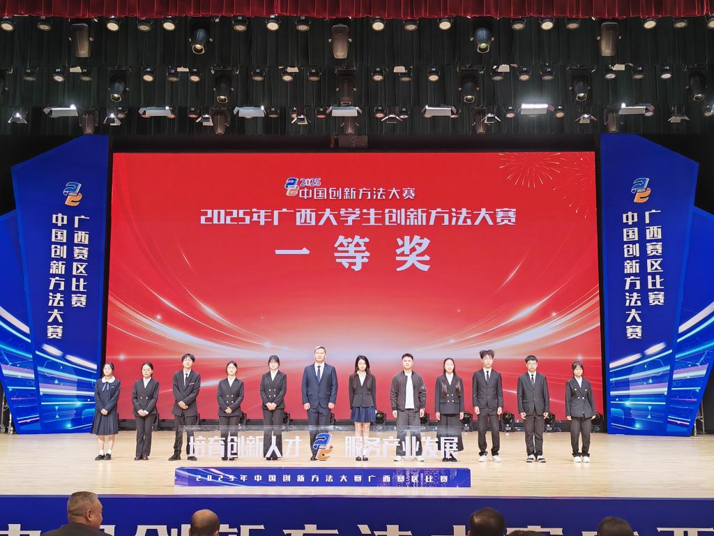 12月16日至18日,由自治区科学技术协会等七部门指导、广西大学生创新方法大赛组委会主办的2025年广西大学生创新方法大赛决赛暨总结交流活动在南宁成功举办;本届大赛以“创新驱动发展,方法赋能未来”为主题,全区30余所高校、105个项目会师总决赛,同台角逐。我校共获一等奖3项、二等奖6项、三等奖2项,获奖等次与获奖总数均位居全区高校前列,生动彰显了我校创新创业教育赋能复合型人才培养的卓越成效。
