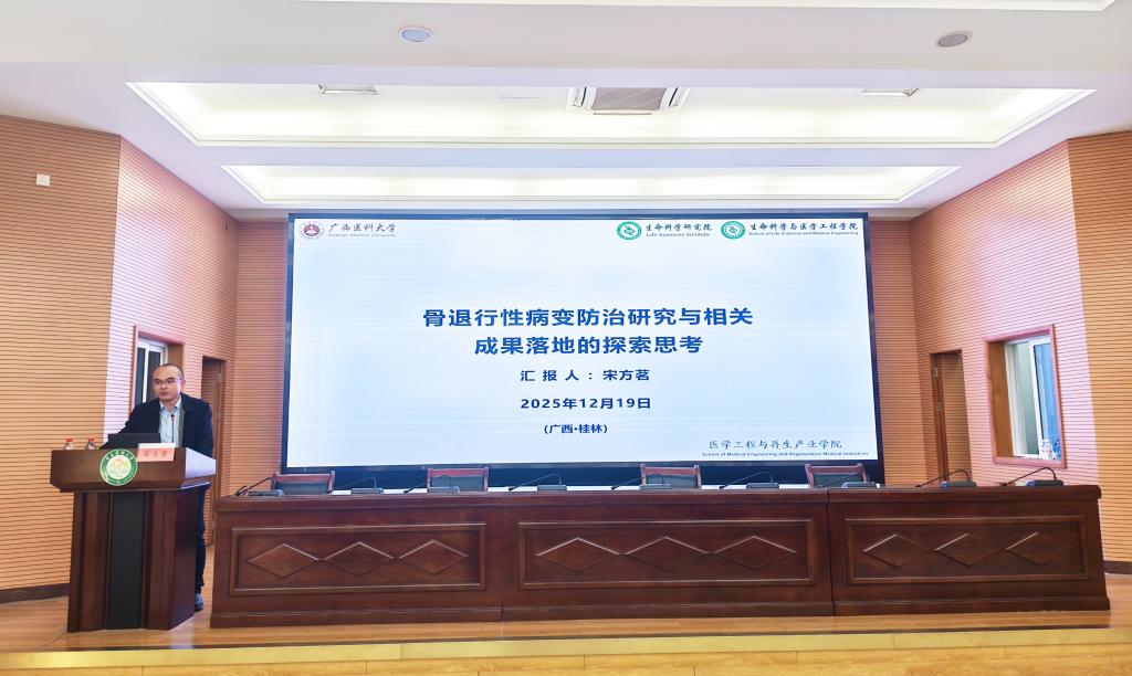 宋方茗研究员紧扣老龄化社会热点问题,以《骨退行性病变防治研究与相关成果落地的探索思考》为题,从骨退行性病变的发病机制、临床诊疗痛点切入,分享了其团队在该领域的系列研究成果与技术突破。为我校相关学科开展临床导向型研究、深化产学研融合提供了宝贵的实践借鉴。