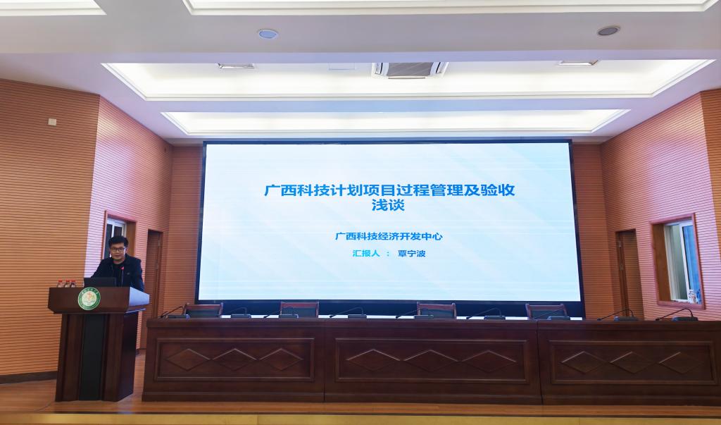 覃宁波高级工程师以《广西科技计划项目过程管理及验收浅谈》为题,结合多年科技管理实践经验,系统解读了广西科技厅核心职能与业务部门架构,清晰梳理了广西科技计划体系的组成类别与申报逻辑。他聚焦项目过程管理、结题验收至结题后管理的流程进行细致讲解,并针对项目管理中常见的难点问题分享了实用应对策略,为我校科研人员规范开展项目管理、高效完成验收工作提供了清晰指引与实战参考。