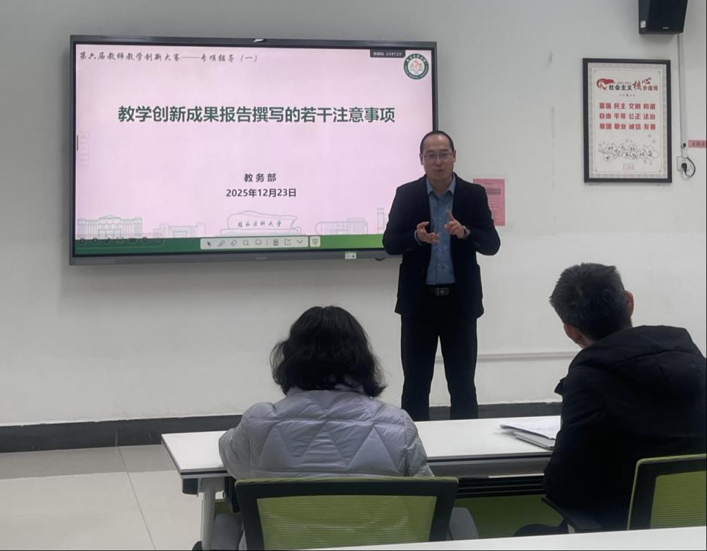 此次辅导直击备赛痛点,精准对接教师备赛的核心需求,有效提升了教师撰写教学创新成果报告的能力。下一步,教务部将持续聚焦教创赛备赛关键环节,开展系列分层分类指导活动,为参赛教师提供全方位、精准化的备赛支持,不断强化教师教学创新能力,助力学校教育教学质量持续提升。