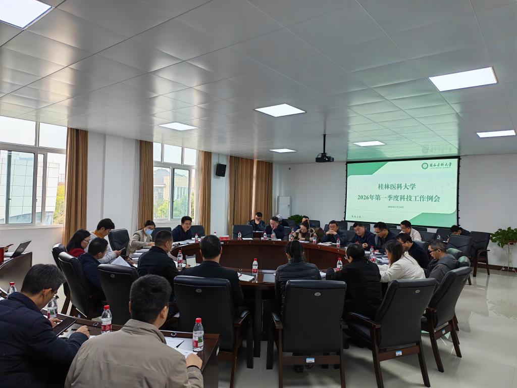3月24日,桂林医科大学2026年第一季度科技工作例会在临桂校区明德楼302会议室召开。科学技术研究院科级及以上干部、各学院及直属医院分管科技工作领导、相关部门负责人及科技业务工作负责人参会。科学技术研究院常务副院长马礼兵主持会议。会议全面总结2026年第一季度科技工作,部署下一阶段重点任务。