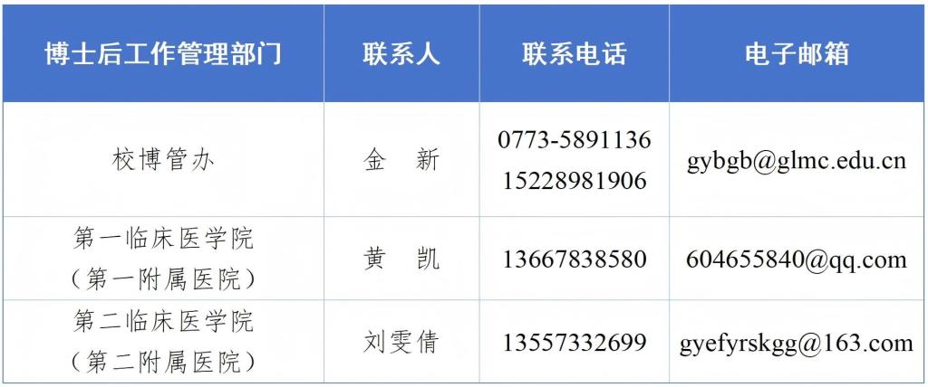 注:由第一临床医学院(第一附属医院)、临桂临床医学院(第二附属医院)招聘的博士后,相关待遇根据各医院相关规定执行。