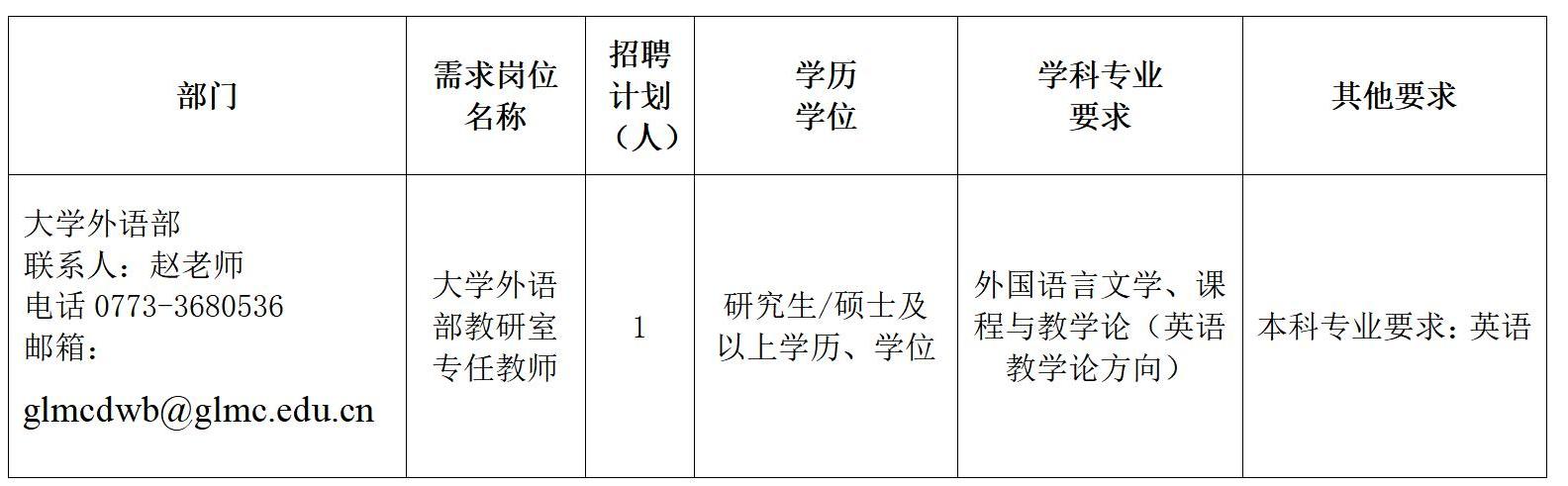 根据学校实际工作需要,现将2025年招聘大学外语部专任教师有关事项公告如下: