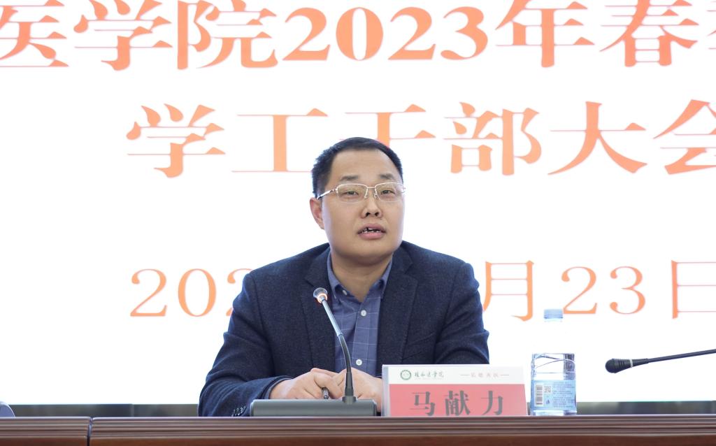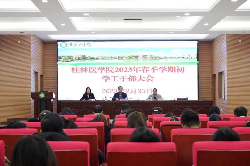 为贯彻落实《桂林医学院以“开学第一课”为重点开展2023年春季学期系列教育引导活动工作方案》,2月23日上午,我校在临桂校区明德楼101会议室召开2023年春季学期初学工干部大会。校党委常委、副院长马献力,学生工作部、研究生工作部和校团委全体人员,各二级学院(系)分管学生工作负责人,本专科、研究生全体专兼职辅导员出席会议。