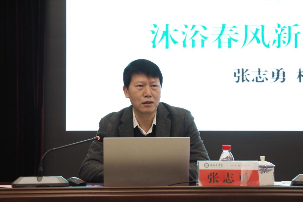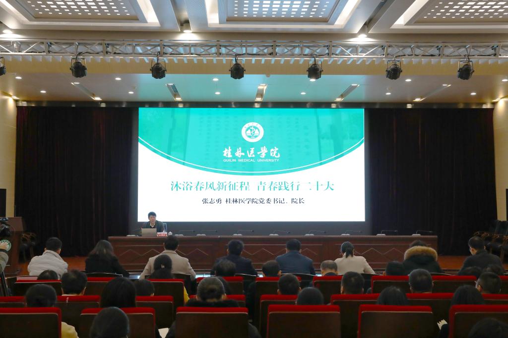 2月24日上午,校党委书记、院长张志勇在临桂校区教学北楼一楼多功能报告厅以“沐浴春风新征程,青春践行二十大”为题讲授2023年春季学期“开学第一课”。校党委常委、副院长马献力,各有关部门、各二级学院党委主要负责人,全体学工干部和200多名学生代表到场聆听。