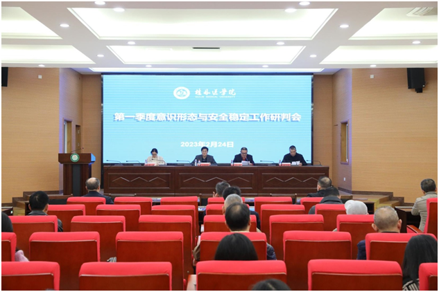 2月24日,我校在临桂校区明德楼101会议室召开2023年第一季度意识形态与安全稳定工作研判会。学校党委副书记王赣华,党委常委、副院长辛懋出席会议,各二级党委书记,各职能部门主要负责人参加会议。会议由辛懋主持。
