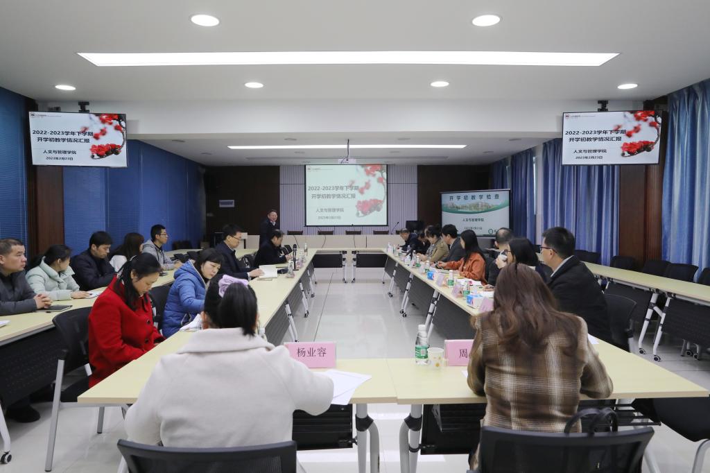 2月23日上午,由校党委书记、院长张志勇带领校级检查组一行12人到人文与管理学院开展开学初教学检查。人文与管理学院党政领导、院办、教学管理科、教研室主任及教师代表参加检查。