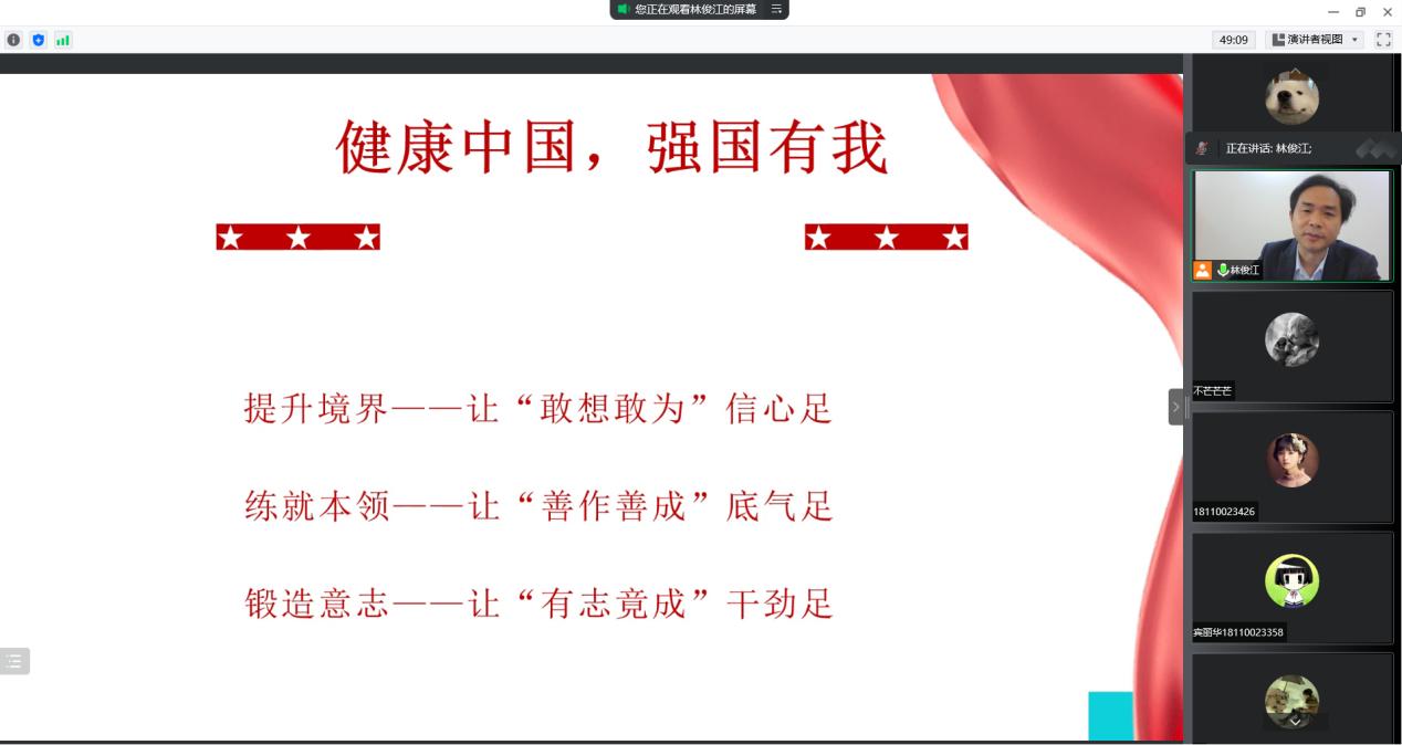3月2日,校党委常委、副院长李清华以“在全力推进健康中国建设中绽放青春之花”为题,通过腾讯会议给2018级临床医学本科三班的同学讲授2023年春季学期“开学第一课”。