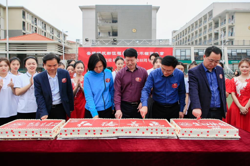 启动仪式现场洋溢着欢乐喜庆的氛围,校领导与师生们共同分享精心定制的校庆生日蛋糕,齐声唱响校歌和生日祝福歌,共同祝福桂医生日快乐、祝福祖国繁荣富强、祝福人民幸福安康!