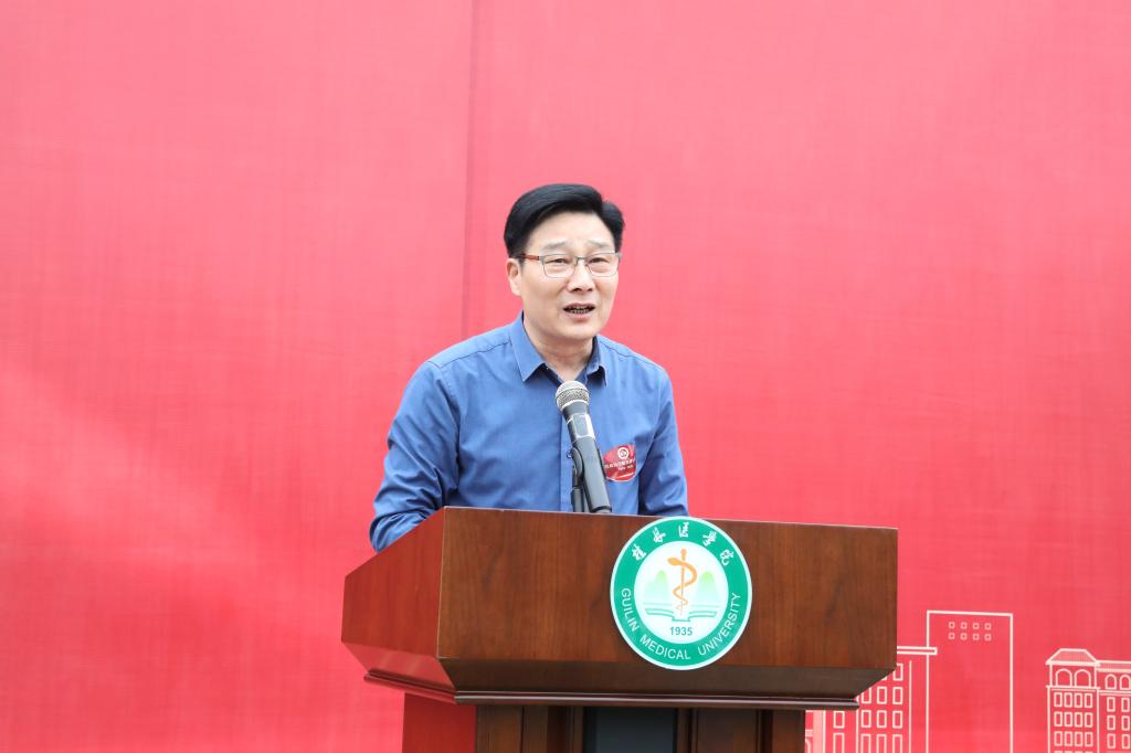学校党委书记、院长张志勇发表了热情洋溢的致辞。他深情回顾了学校创建、发展的不凡历程和取得的巨大成就,并代表学校向每一位努力拼搏的桂医人,以及每一位关心支持学校建设发展的各级领导和社会各界人士表示最衷心的感谢。他强调,今年是全面贯彻落实党的二十大精神的开局之年,也是我校“更名大学”的关键之年,需要我们比过往任何时候都更加同心同德、更加奋发有为。全校上下要深入学习贯彻习近平新时代中国特色社会主义思想和党的二十大精神,全面落实立德树人根本任务,要站在建校88周年的新起点上,握好接力棒、迈步新征程,不断开启学校高质量发展新篇章,以更优异成绩迎接学校建校九十周年。