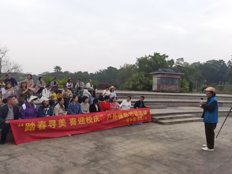 阳春三月,春暖花开,正是踏青赏花的好时节,为庆祝建校88周年,丰富校园文化生活,提高教职工的摄影创作水平,3月11日,由校工会举办的“踏春寻美,喜迎校庆”主题户外摄影培训活动在桂林市园博园举行。此次活动邀请了桂林市摄影协会副主席何福章为大家作摄影知识讲座,活动吸引了近40名教职工摄影爱好者参加。