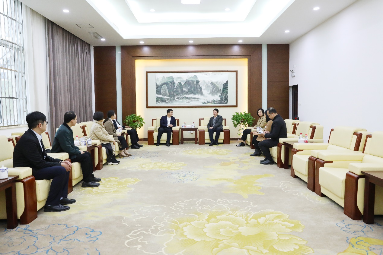 3月20日上午,梧州市红十字会医院院长余永铭等一行6人来我校开展交流调研,我校党委书记、院长张志勇在临桂校区明德楼102会议室热情接待来宾,副院长陈旭、党办院办、研究生学院负责人参与会谈。