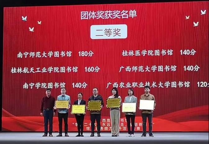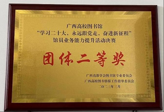 3月17日,由广西高教学会图书馆专业委员会、广西高校图书情报工作指导委员会主办,广西民族大学图书馆承办的广西高校图书馆“学习二十大,永远跟党走,奋进新征程”馆员业务能力提升决赛活动,桂林医学院图书馆馆员莫岚、李林健获“馆员信息检索”二等奖;阳春、张家琳和李林健获“馆员知识竞赛”三等奖;并以总分第四的成绩荣获本次比赛团体二等奖。