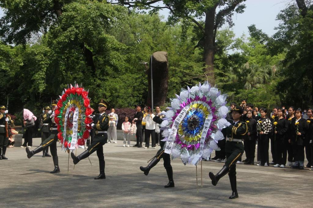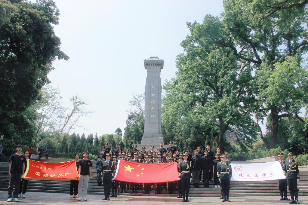 4月8日上午,桂林医学院国旗护卫队全体队员赴七星公园烈士纪念碑广场开展“缅怀先烈志,共铸中华魂”清明节祭扫活动。