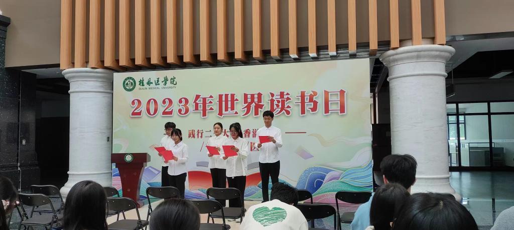 此次读书日活动内容丰富、形式多样,有朗诵、党史知识问答竞赛、读者好书推荐现场交流活动、英文原著阅读赛、“起点杯”英语四级听力打卡竞赛、“学问杯”校图书馆影评大赛、“青春筑梦 强国有我”学习宣传贯彻党的二十大精神知识竞赛、第二届桂林医学院大学生信息素养挑战赛、《复兴文库》展览等系列活动,鼓励师生多读书、读好书,进一步增强为实现中华民族伟大复兴的文化自信。