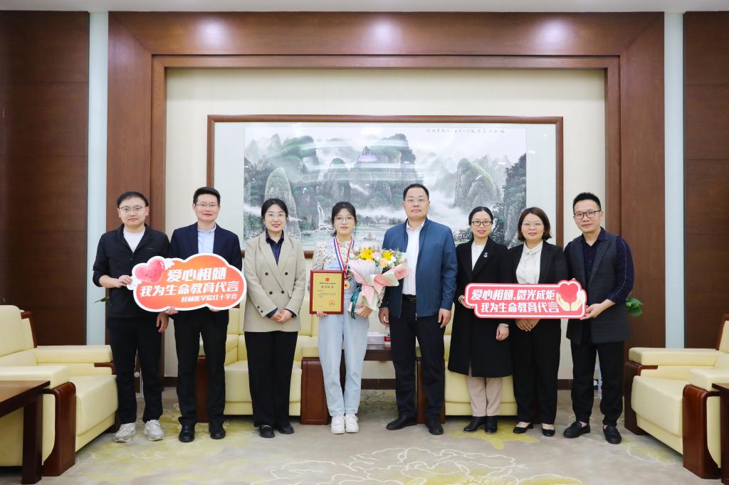 4月27日下午,校党委常委、副院长、校红十字会会长马献力在临桂校区明德楼102会议室慰问我校造血干细胞捐献者黄自茵同学。党委宣传部、学工部、校团委负责人及辅导员代表陪同慰问。