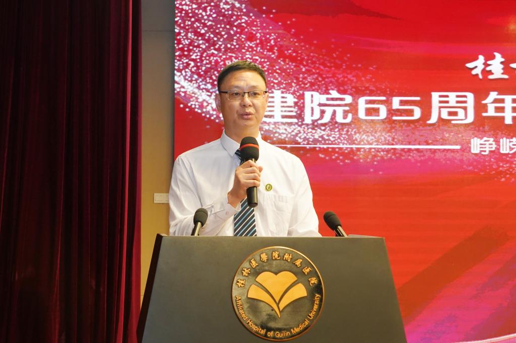 张志勇发表讲话。今天,桂林医学院附属医院迎来了65周年院庆。值此喜庆时刻,张志勇代表学校党委行政,向附属医院的全体师生、全体医护人员表示热烈祝贺!向长期关心、支持附属医院教育、卫生事业发展的各位领导、各界朋友表示崇高的敬意和由衷的感谢!