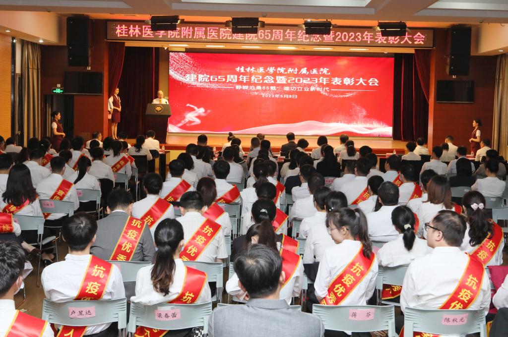 5月8日晚,桂林医学院附属医院建院65周年纪念暨2023年表彰大会在综合楼多功能厅隆重举行。大会回顾了医院65年发展历程,展望医院美好未来,同时表彰医院先进集体和个人。