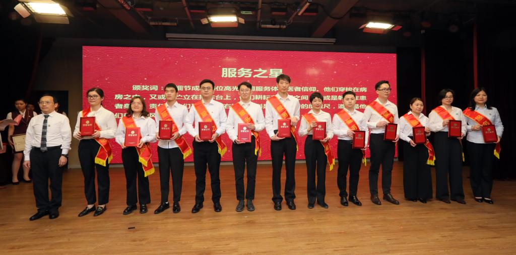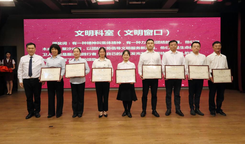 医院领导班子成员分别给受表彰的集体及个人颁发荣誉证书,并分别与受表彰者合影。