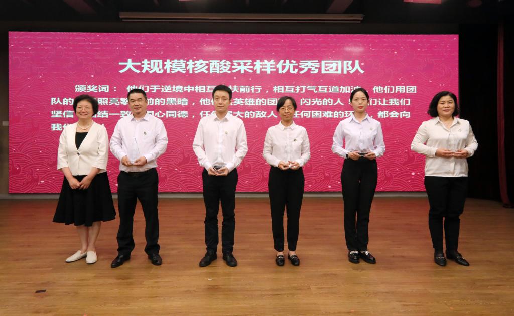 文琼仙同志为大规模核酸采样优秀团队颁奖