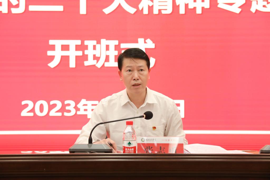 校党委书记、院长张志勇在开班式上作动员讲话。他指出,开展专题研讨班,是学习贯彻党的二十大精神的重要任务、是培养忠诚干净担当的高素质干部队伍的重要举措、是推动学校事业高质量发展的重要抓手。本次专题研讨班以“深入学习贯彻党的二十大精神、紧跟伟大复兴领航人踔厉笃行”为主题,采取个人自学、集中授课、举办读书会、集中研讨、线上集中学习、现场教学等方式进行,力求引导全体中层干部深刻领会、准确把握党的二十大报告的核心要义、精神实质、丰富内涵。