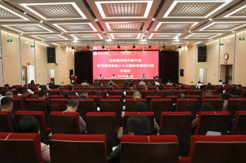 5月12日下午,桂林医学院中层干部学习贯彻党的二十大精神专题研讨班开班。在家校领导出席开班式,全体中层干部参加。